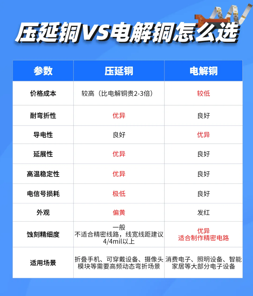 但压延铜表面光洁度更高,在高速信号传输时,能够极大地减少信号反射和损耗,保证信号的完整性。
