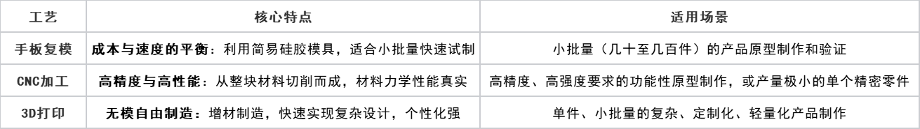 为了帮助你更好地理解手板复模的定位,可以将其与CNC加工和注塑成型进行简要比较: