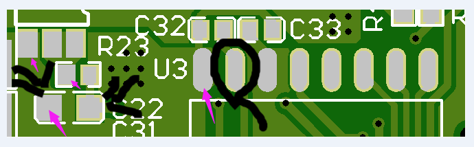 上图相信很多绘图工程有遇到,其实焊盘一大一小是您设计没考虑到位。铜皮上的焊盘取得阻焊开窗的大小,完全叠加在铜皮上焊盘大小就是阻焊开窗的大小,那么阻焊开窗就要同焊盘等大或比焊盘大1mil。