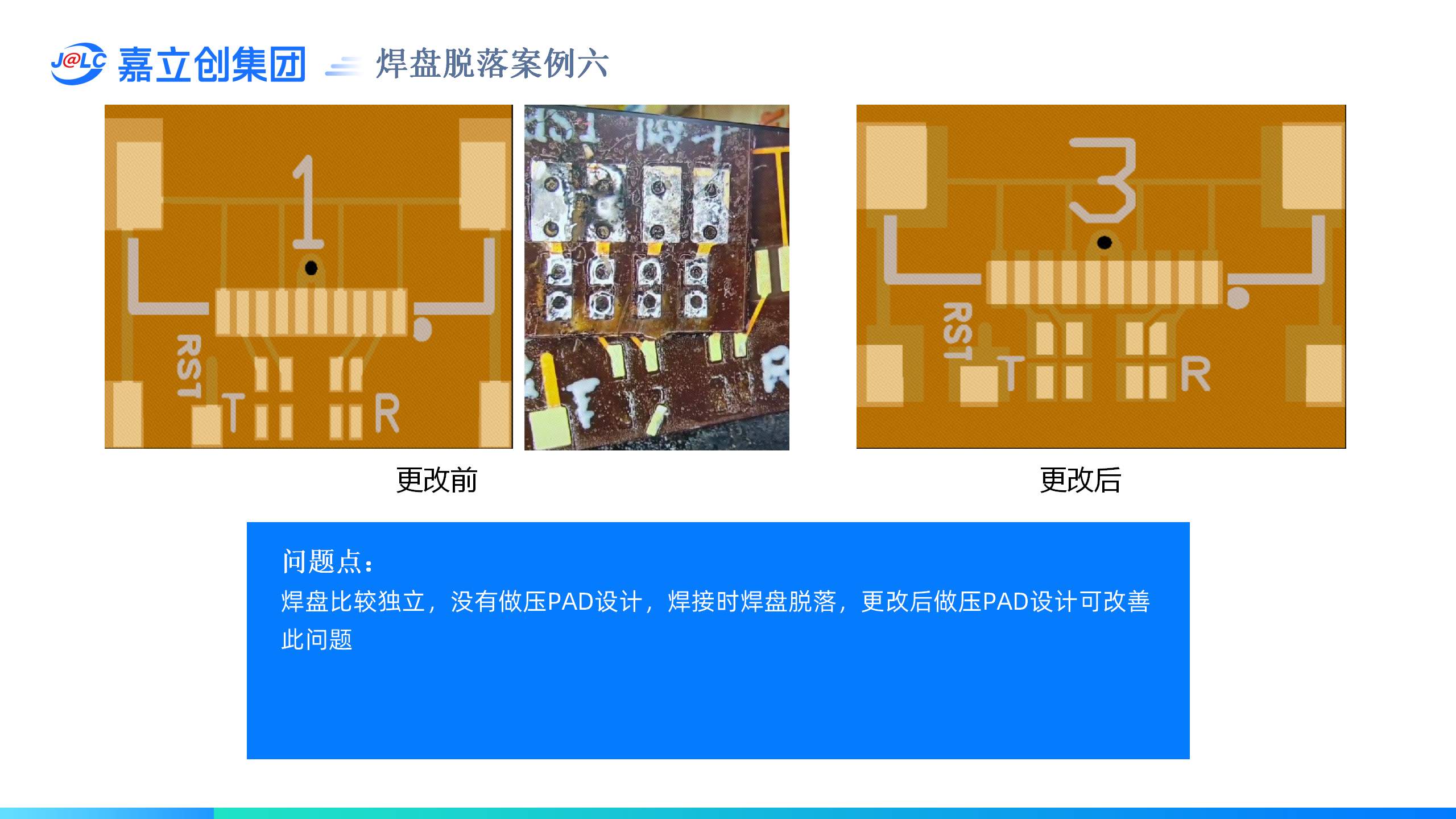 避免焊盘脱落设计要求:(1)独立焊盘建议做阻焊膜压PAD设计;(2) 正反两面焊盘不能重叠;(3) BGA焊盘需≥0.25mm;(4) 插件孔区域需做补强