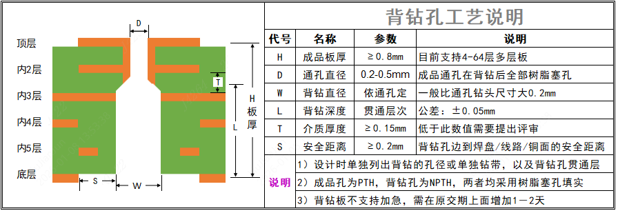 类需要设计为盲孔,而采用背钻工艺的,可以设计为通孔,并且通过背钻把内3层到底层的孔壁铜面钻掉,从而避免这些多余镀