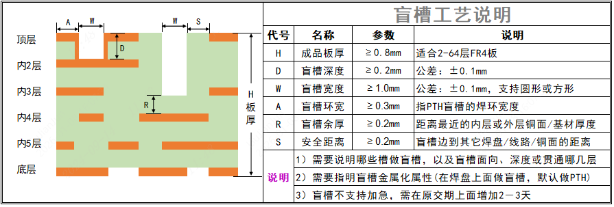 1.盲槽属于特殊工艺,不支持加急,交期会后延1-2天
