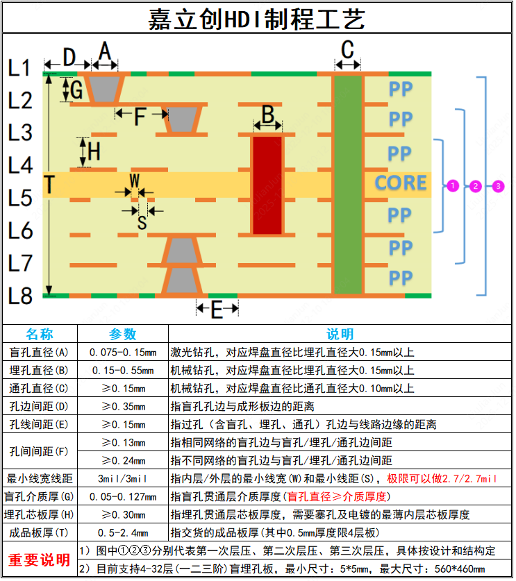 1)1)1)盲孔是采用激光打孔的,因此孔径不能太大,直径在0.075-0.15mm以内(同时需要结合相对应的PP层厚度)
