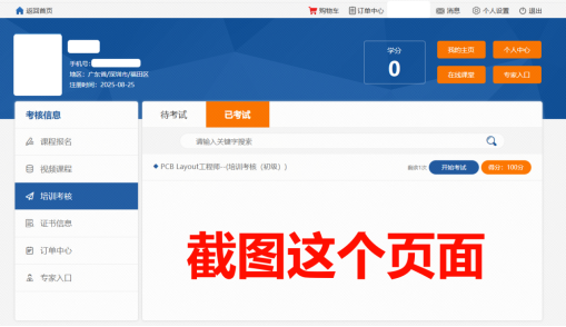2. 请将此截图提交至 https://kaoshi.lceda.cn/kaoshi/order-list考证订单——确认信息——申领截图
