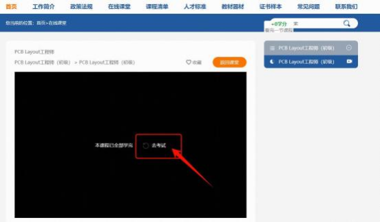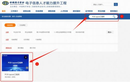 2. 在页面搜索框中输入考核专业名称:PCB Layout 工程师 ,点击搜索进入PCBLayout 工程师学习课程