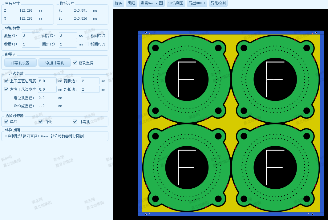 - 改用邮票孔把单只板子与光板连接起来,这种圆形的板子,实在不适合VCUT