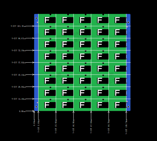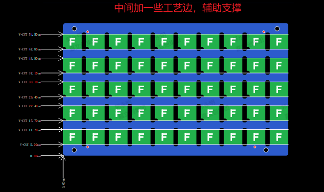如下图所示,全面VCUT,同时左右加工艺边,保证避免了右侧的边缘不平滑。